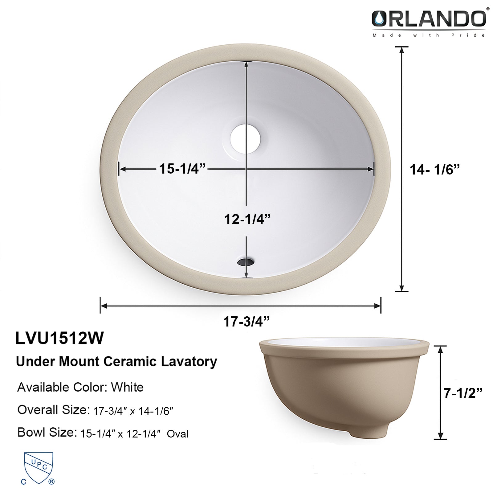 - Bowl Size: 15-1/4" x 12-1/4”, Depth: 7-1/2 ''.