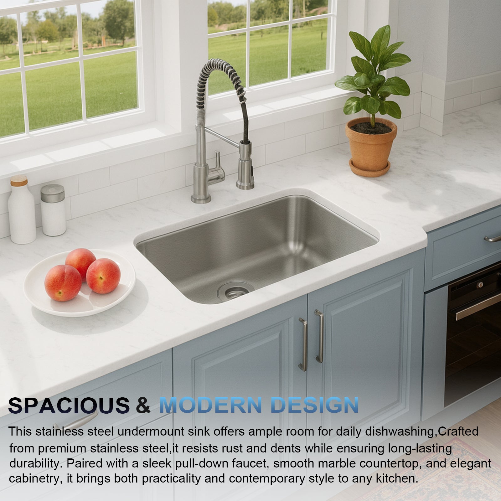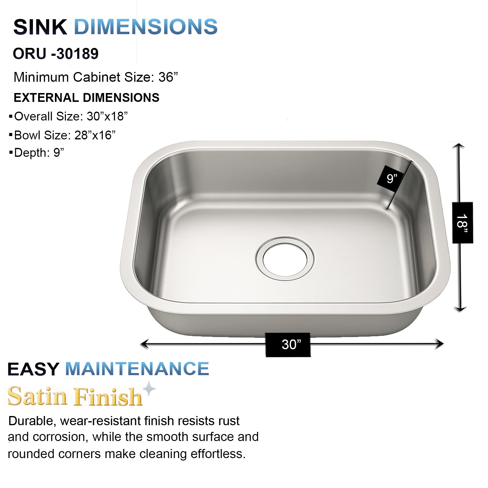 30"x18" Undermount Stainless Steel Single Bowl Kitchen Sink, 18 Gauge