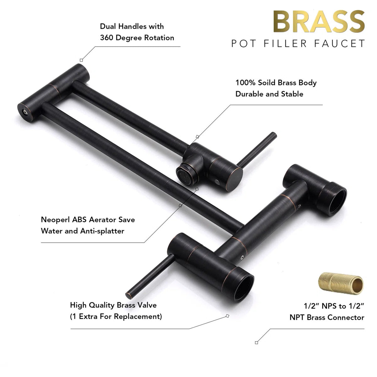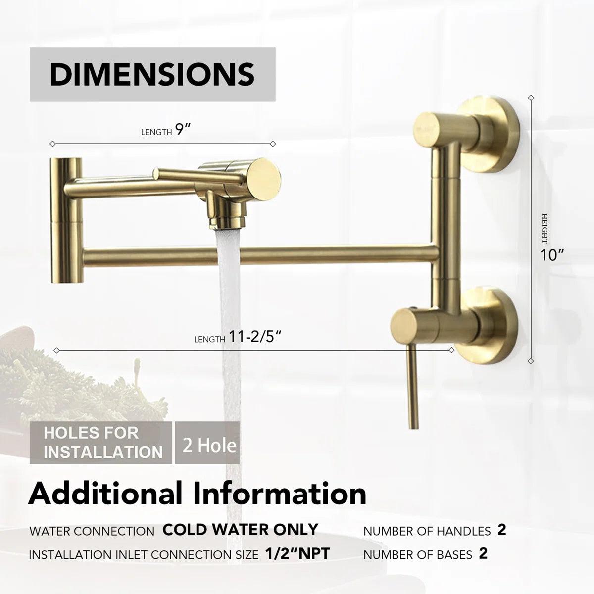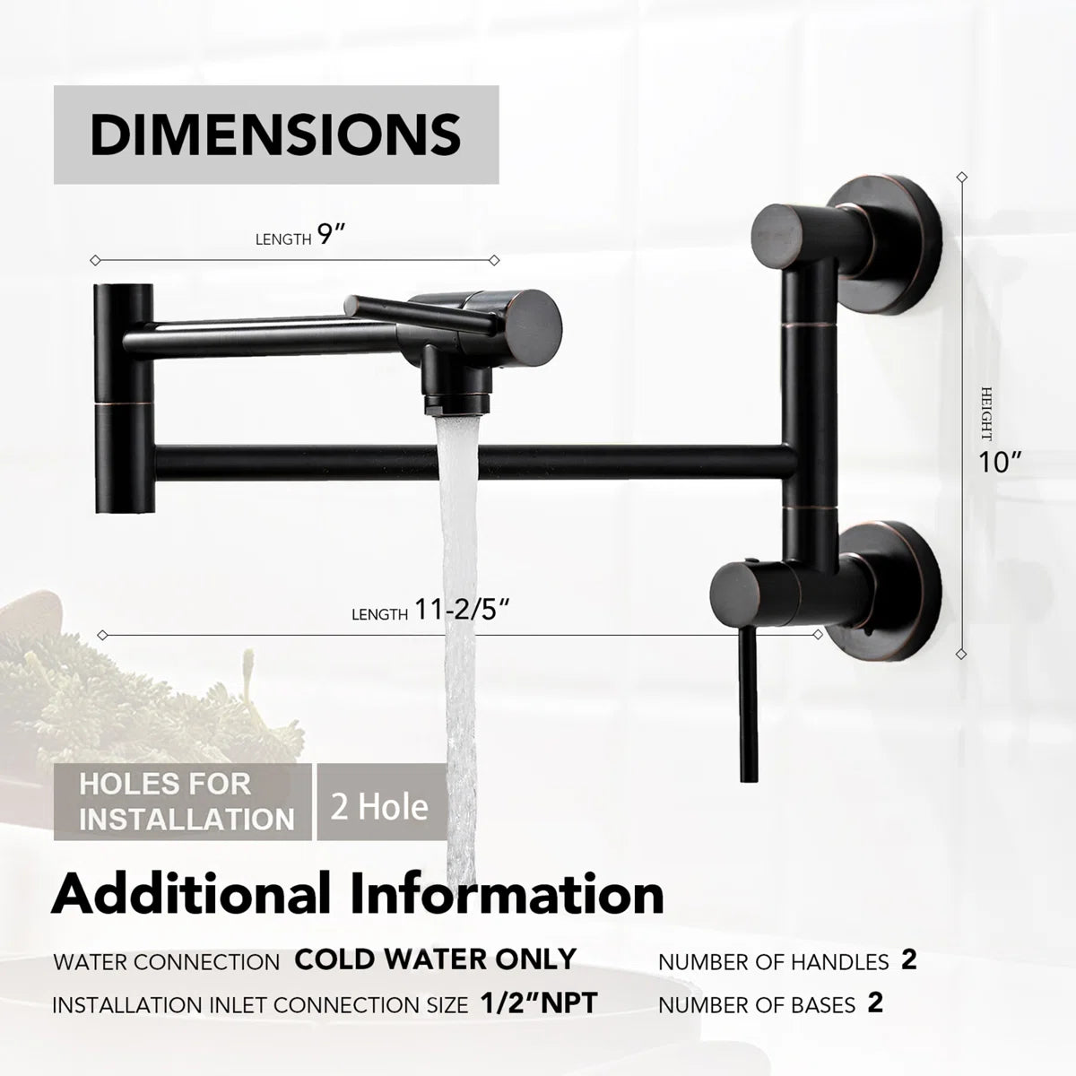 • Standard 1/2'' NPT Threads, single-hole wall mount Pot Filler, wall-mount